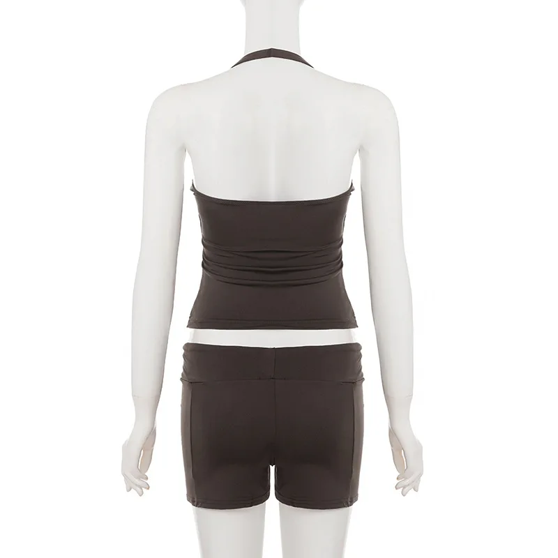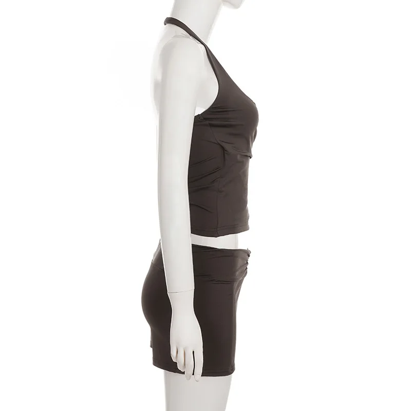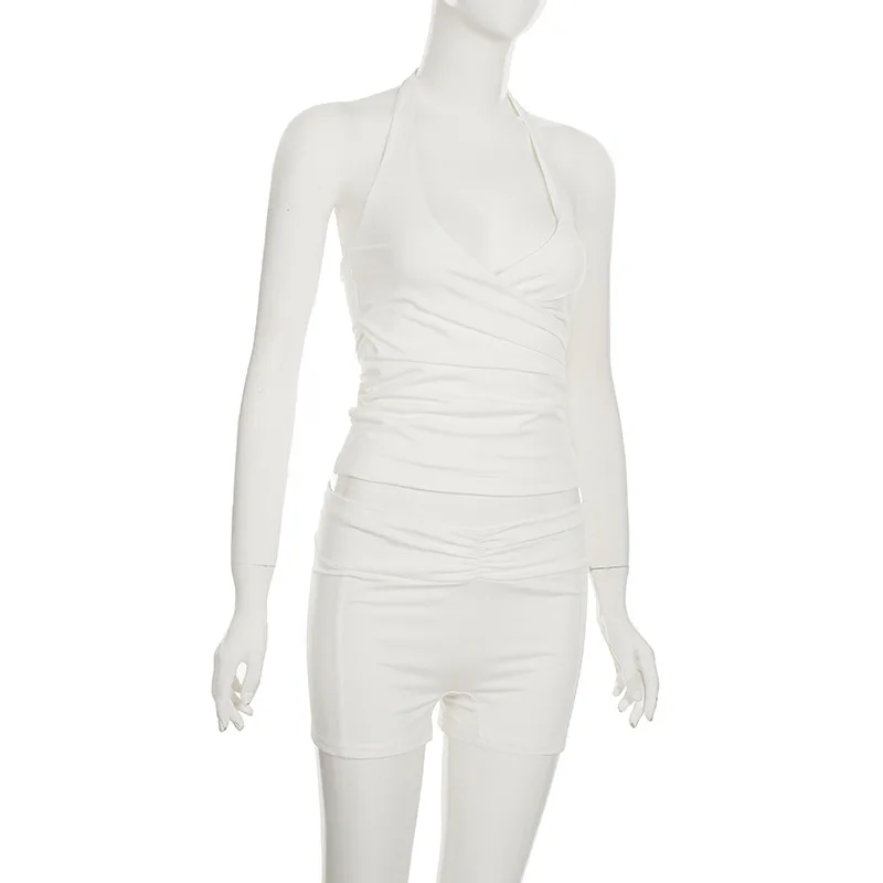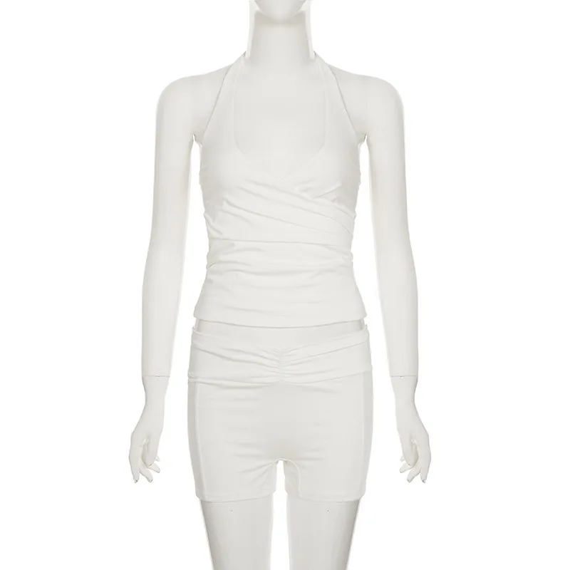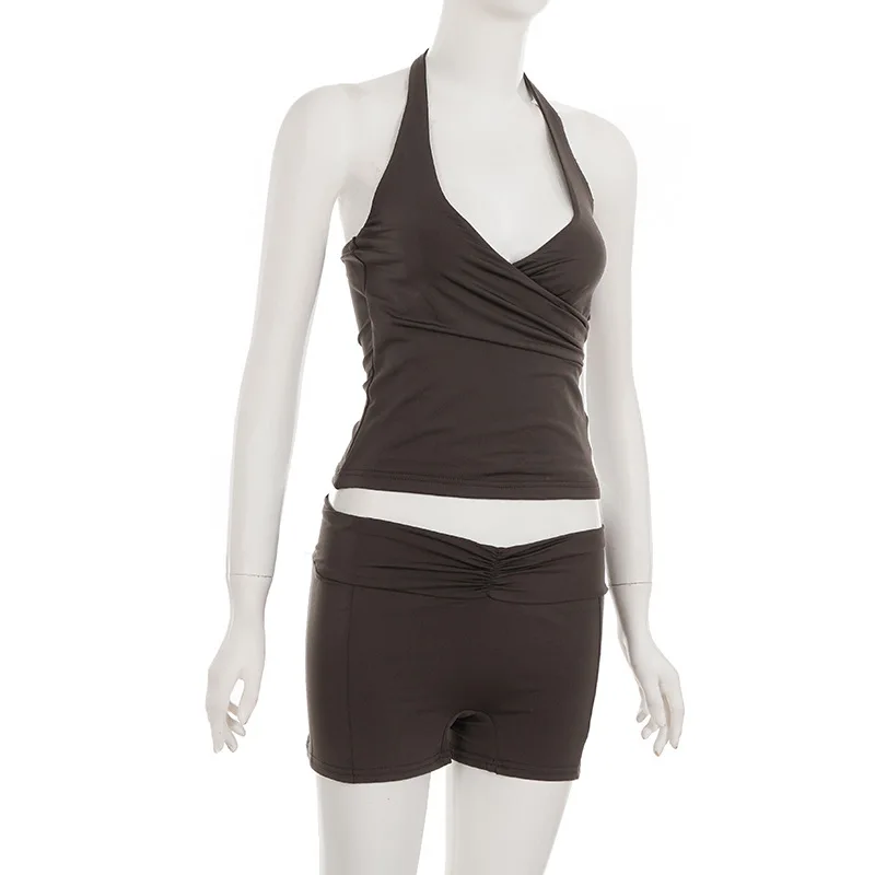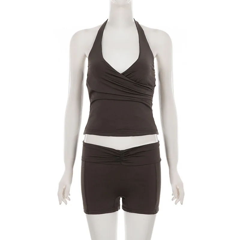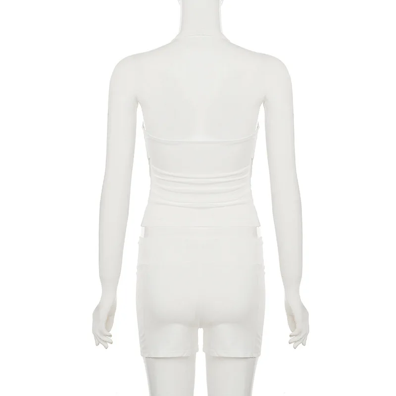 Trendix Bodycon Tank Tops 2 Piece Sets Women Summer Slim Solid Sports Yoga Shorts Ladies Street Sexy Deep V Neck Crop Top Suits